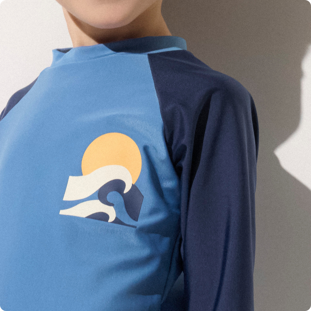 Una camiseta de natación ideal para proteger la sensible piel de tu hijo en los días soleados de playa o piscina.