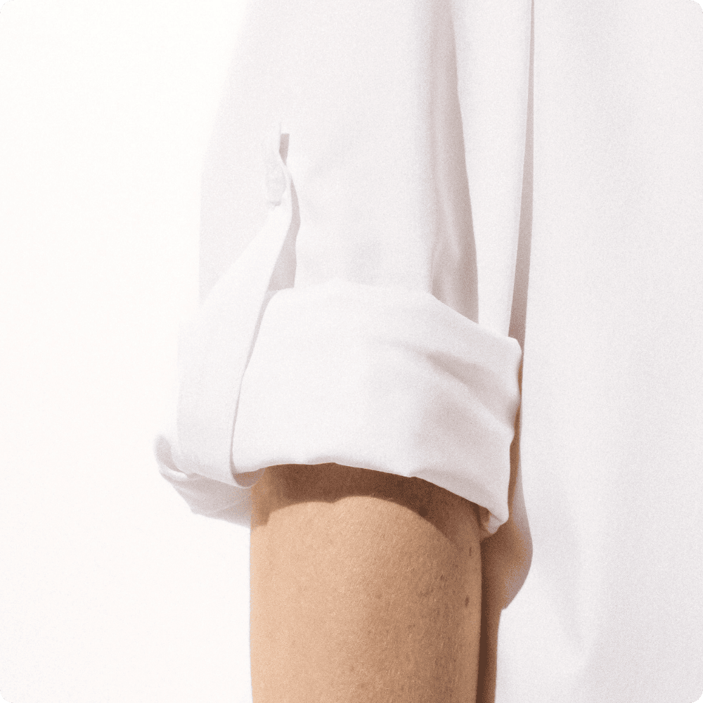 Para una protección solar óptima del cuello y la nuca, el cuello se puede plegar y sujetar con un práctico imán. Las mangas están diseñadas para que puedas subirlas y bajarlas con estilo. También tiene un bolsillo en el pecho.