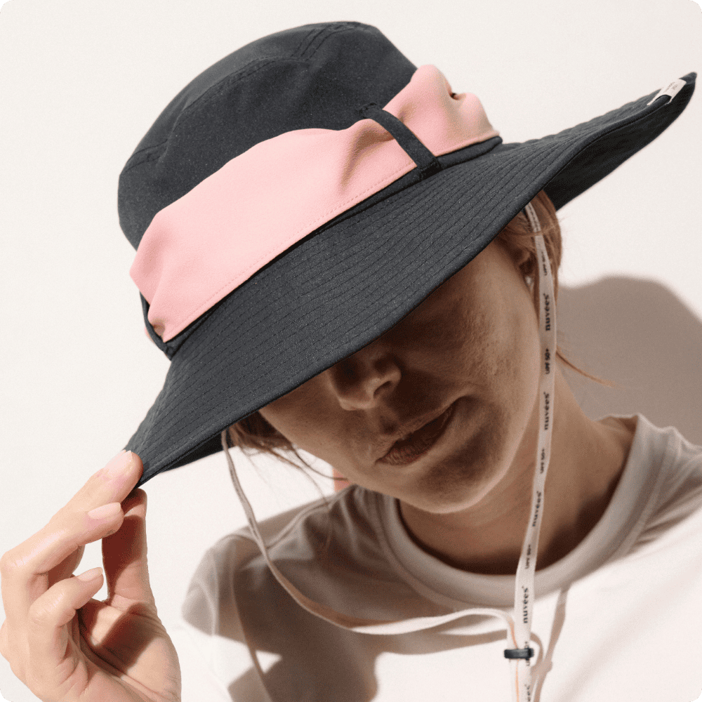 Gracias a sus dos presillas laterales, podrá personalizar su sombrero con uno de nuestros pañuelos anti-UV Nuvées (5 colores a elegir), para un look aún más a la moda.