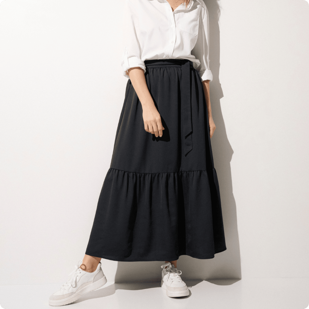 Perfecta para pasear por la ciudad o disfrutar de un momento de relax bajo el sol, esta falda larga combina feminidad y comodidad durante todo el día.