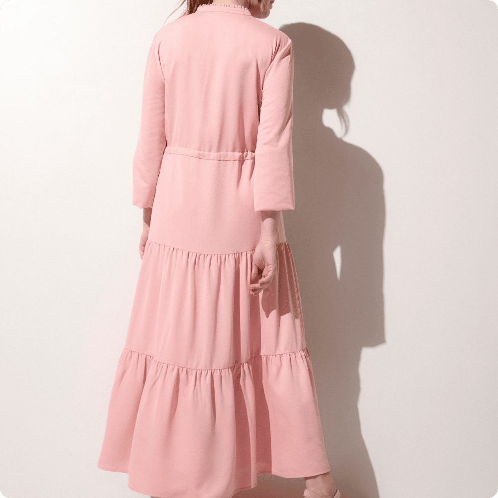 Las mangas de nuestro vestido con protección solar son estilizadas y fluidas. Tienen un puño elástico para que puedas remangarlas y arreglarlas a tu gusto. La talla del vestido puede ajustarse mediante un cordón, según cómo quieras que te quede. Se abre en el cuello para que pueda elegir la cobertura y el escote que desee.