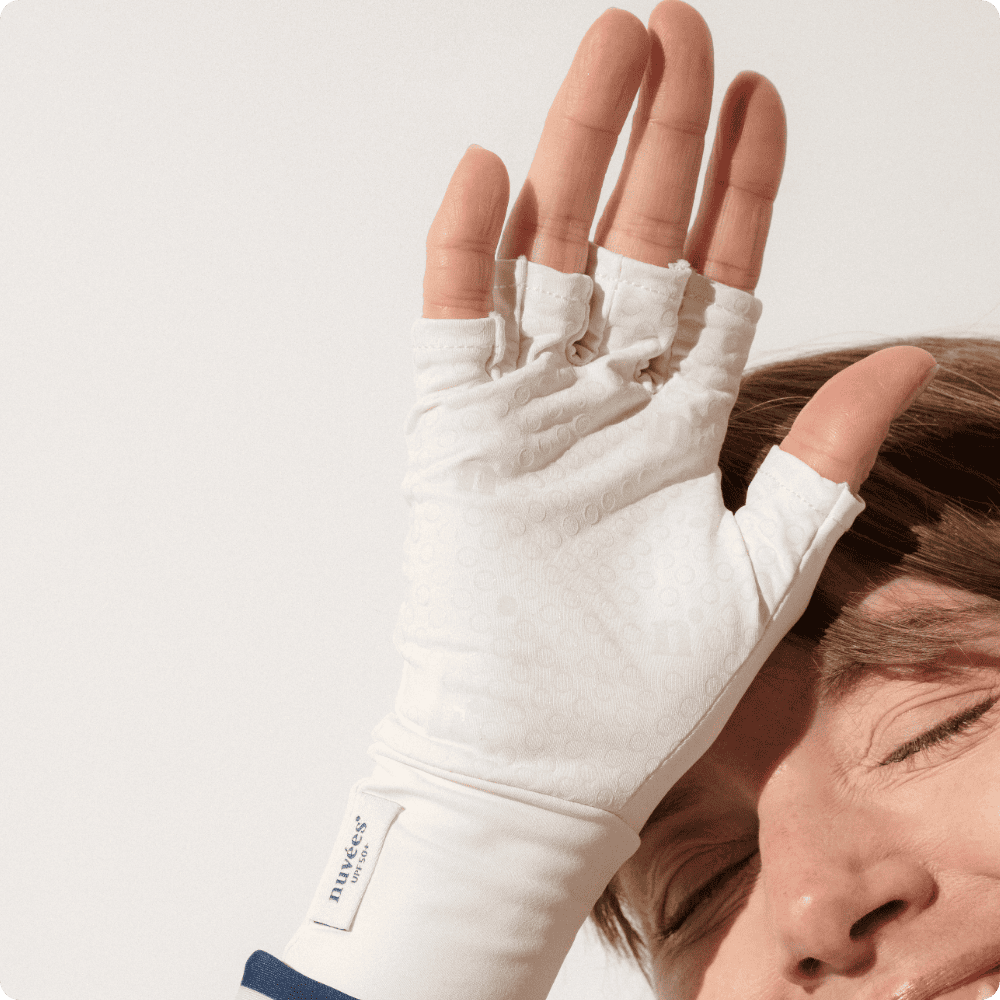 El diseño de estos mitones cubre la mano y los dedos hasta la primera falange, ofreciendo una protección solar eficaz mientras deja las puntas libres para un uso práctico.