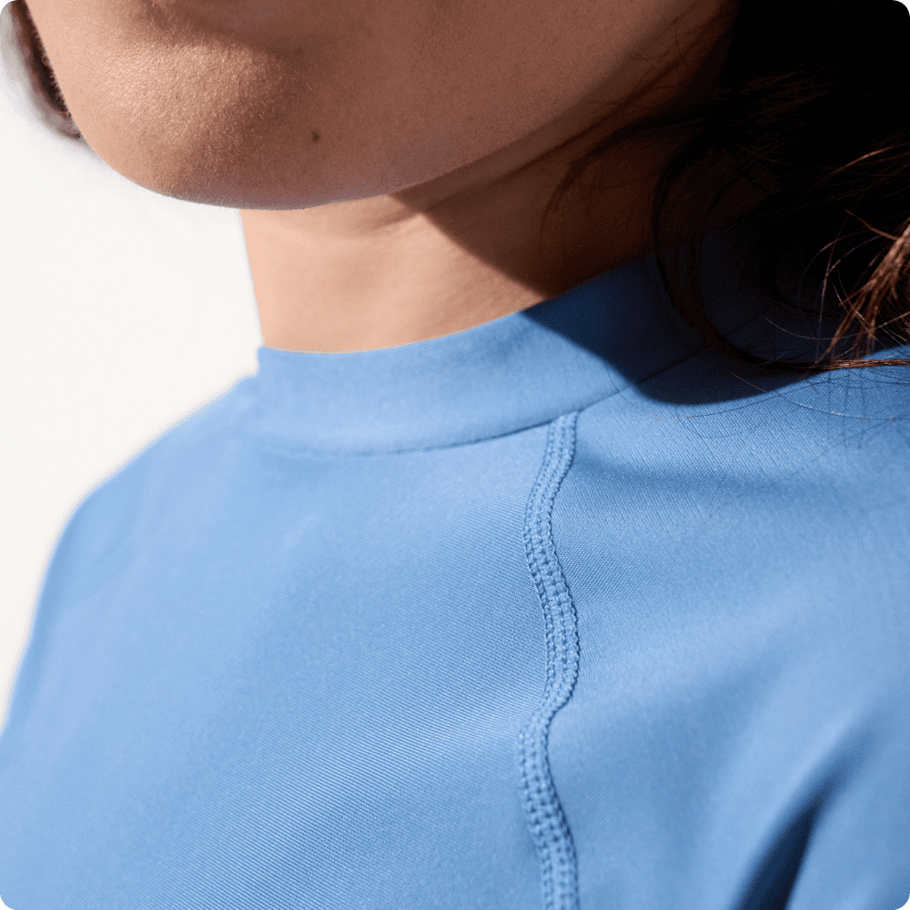 Su tejido elástico y transpirable y su corte entallado te mantendrán lo más cómoda posible. El tejido de esta camiseta con protección solar para mujer se seca muy rápido, por lo que no pasarás frío al salir del agua.