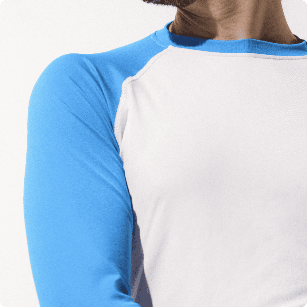 Descubre nuestro nueva camiseta de natación con protección solar de manga larga para hombre. Te acompañará durante todas tus actividades de natación y otras actividades acuáticas y te protegerá eficazmente de los rayos nocivos del sol gracias a su certificación UPF 50+, tanto dentro como fuera del agua.